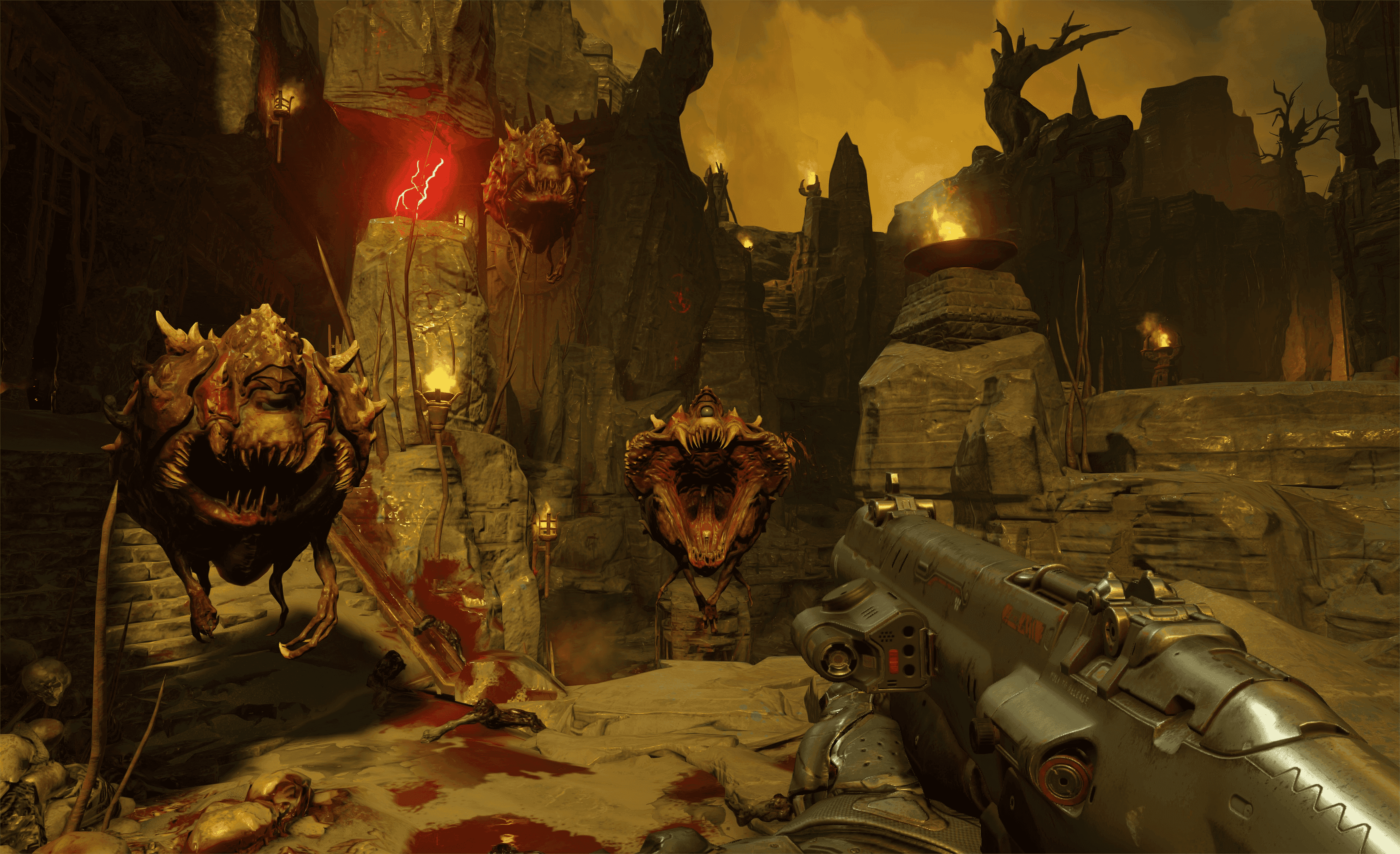 Developed by id software, the studio that pioneered the first-person shooter genre and created multiplayer Deathmatch, DOOM returns as a brutally fun and challenging modern-day shooter experience. Relentless demons, impossibly destructive guns, and fast, fluid movement provide the foundation for intense, first-person combat – whether you’re obliterating demon hordes through the depths of Hell in the single-player campaign, or competing against your friends in numerous multiplayer modes. Expand your gameplay experience using DOOM SnapMap game editor to easily create, play, and share your content with the world. STORY: You’ve come here for a reason. The Union Aerospace Corporation’s massive research facility on Mars is overwhelmed by fierce and powerful demons, and only one person stands between their world and ours. As the lone DOOM Marine, you’ve been activated to do one thing – kill them all.KEY FEATURES: A Relentless Campaign There is no taking cover or stopping to regenerate health as you beat back Hell’s raging demon hordes. Combine your arsenal of futuristic and iconic guns, upgrades, movement and an advanced melee system to knock-down, slash, stomp, crush, and blow apart demons in creative and violent ways. Return of id Multiplayer Dominate your opponents in DOOM’s signature, fast-paced arena-style combat. In both classic and all-new game modes, annihilate your enemies utilizing your personal blend of skill, powerful weapons, vertical movement, and unique power-ups that allow you to play as a demon. Endless Possibilities DOOM SnapMap – a powerful, but easy-to-use game and level editor – allows for limitless gameplay experiences on every platform. Without any previous experience or special expertise, any player can quickly and easily snap together and visually customize maps, add pre-defined or completely custom gameplay, and even edit game logic to create new modes. Instantly play your creation, share it with a friend, or make it available to players around the world – all in-game with the push of a button.